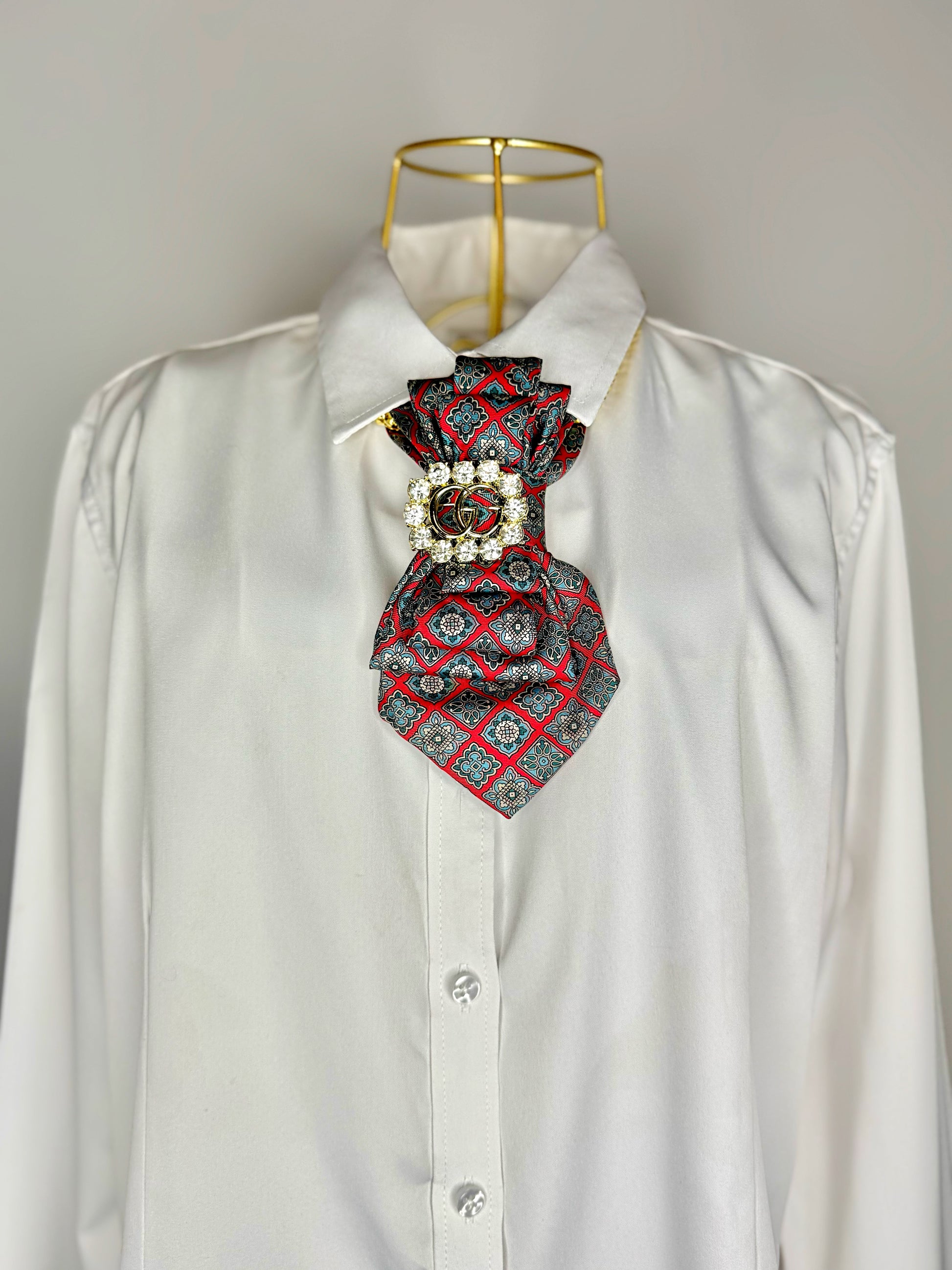 Burgundy pattern tie with bling initial brooch