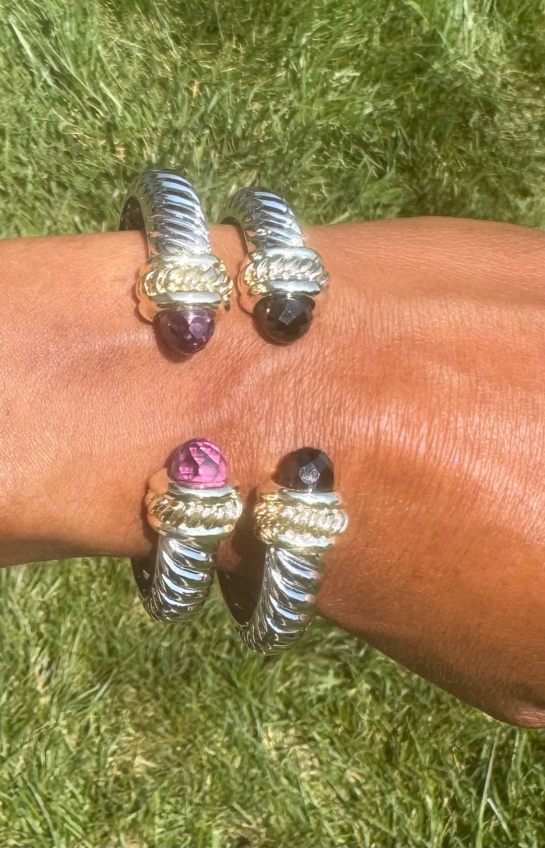 Stainless steel cuff bangles with various stones and colors