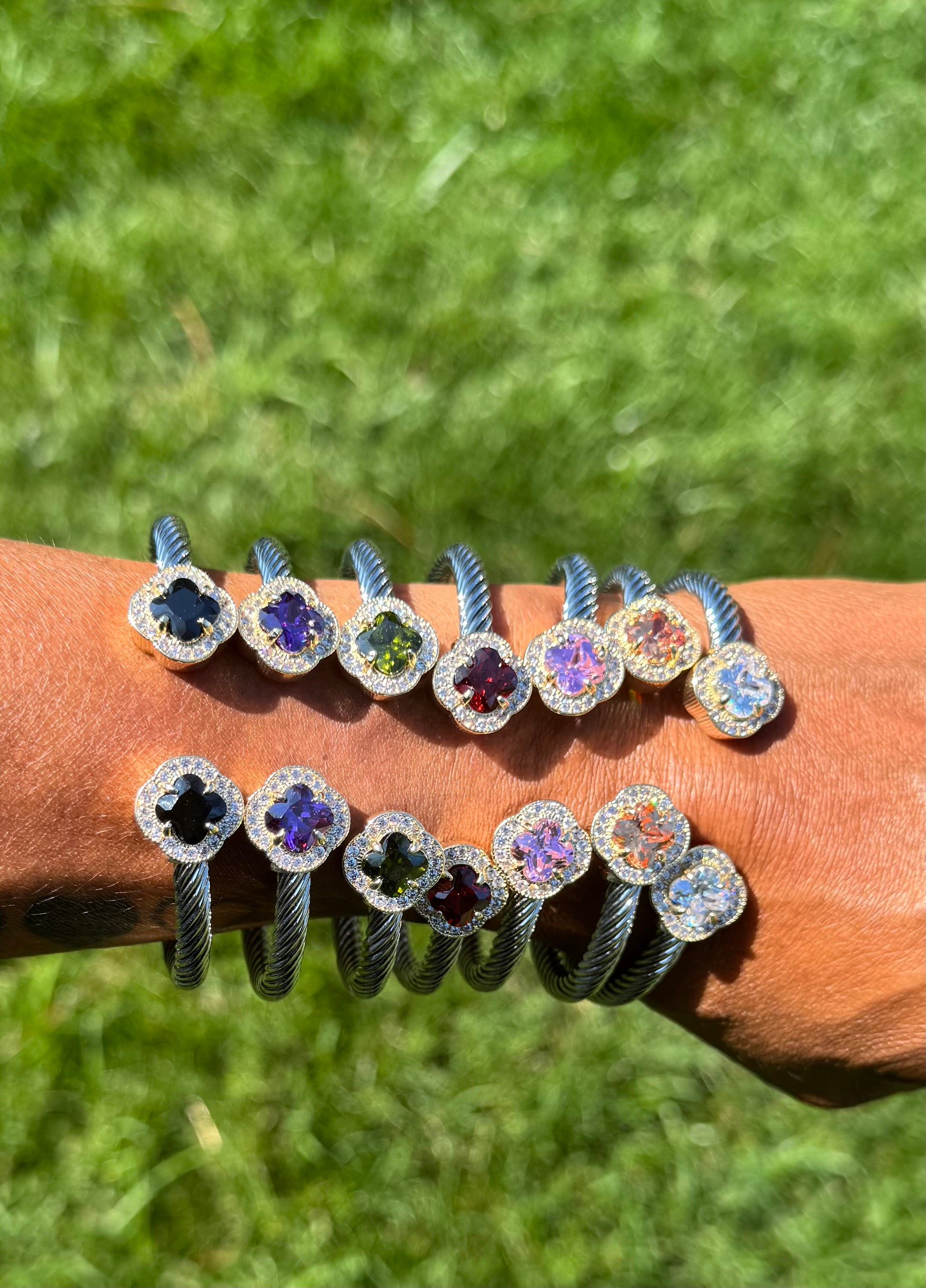 Stainless steel cuff bangles with various stones and colors